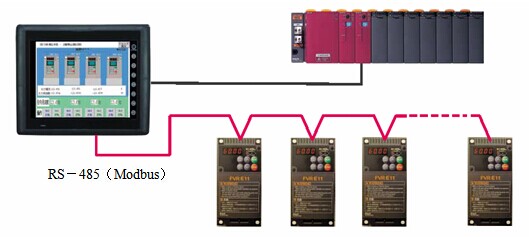 我公司变频器与POD电脑联接采用RS-485数字通迅接口联机(双方向通迅),改变其它厂商一直采用模拟信号(布线多而乱、精度差、控制复杂).